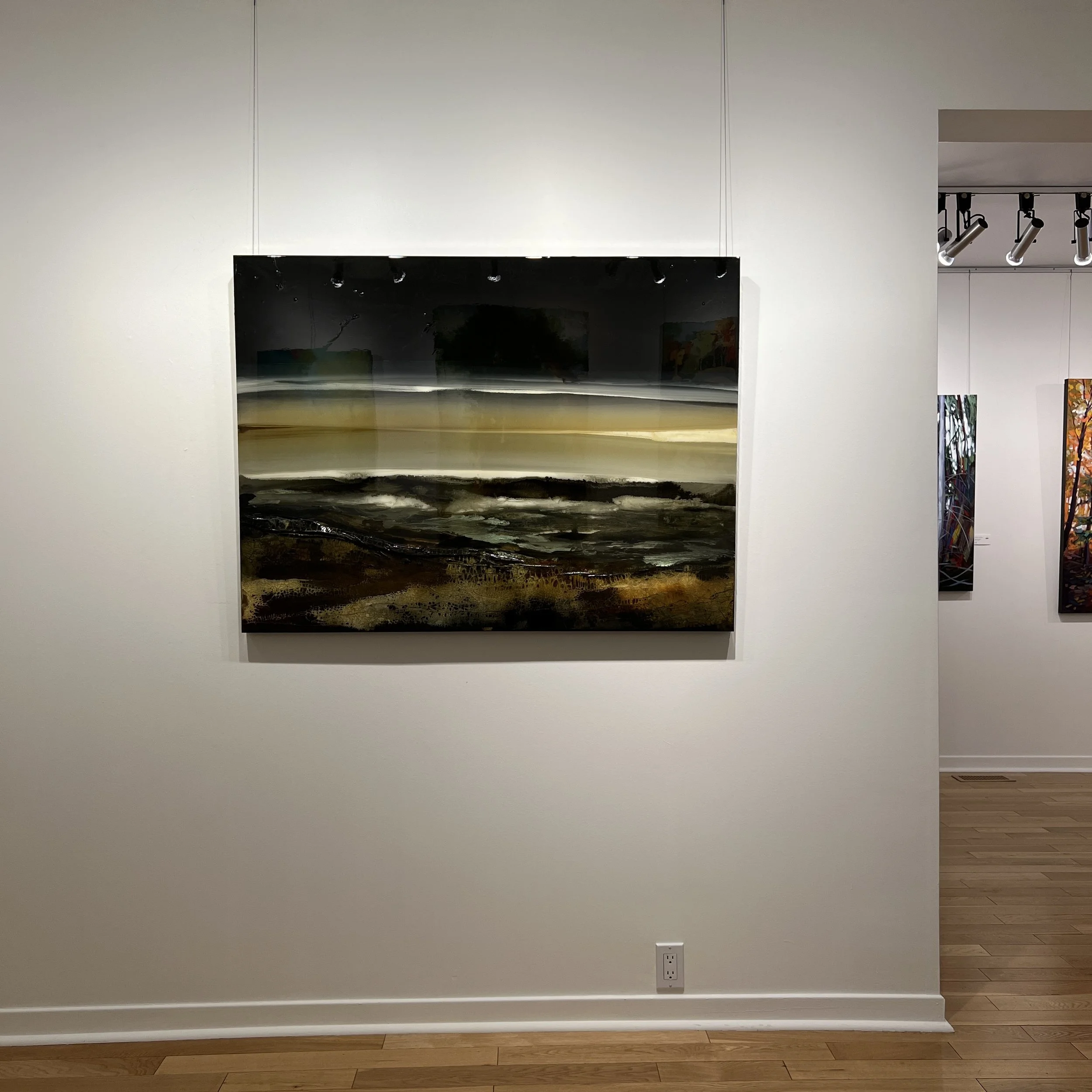 The Abstract Landscape work of Greg Benz are usually based on photographs that he takes on his travels across Ontario, Canada. Spending lots of time on Lake Huron at his family cottage is one of the main influences on his work. Heavily textured, by using all sorts of Mixed Mediums and unconventional tools to create cracks and separations. Mostly using Acrylic paint to build up layers and layers till the landscape is complete.